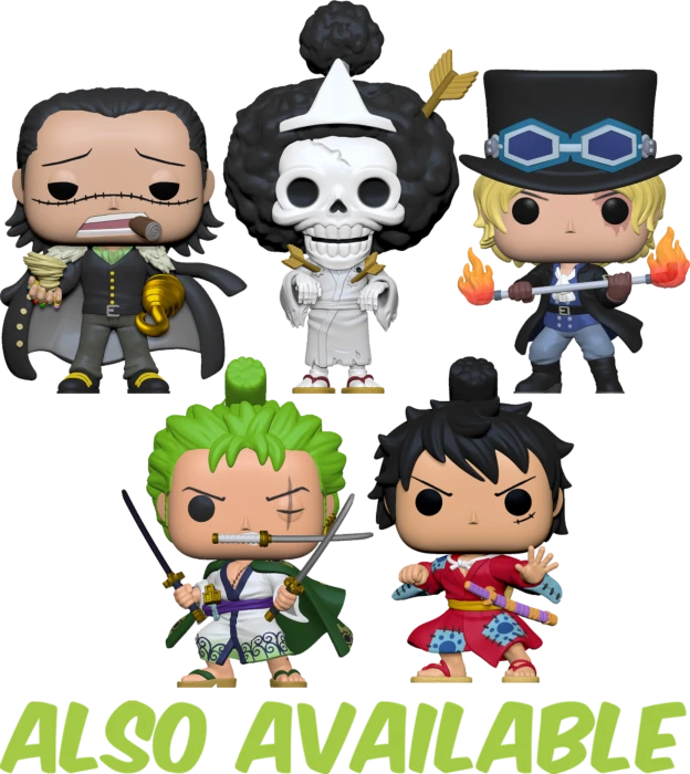 Funko’s new range of One Piece Pop! Vinyl Figures includes some old favourites, as well as some newcomers to the Pop! series including the sworn brother of Luffy, Sabo, Roronoa. Zoro armed with his swords, the “Desert King” Sir Crocodile with a big cigar, Brook wearing his white kimono, as well as Monkey D. Luffy also wearing a kimono.