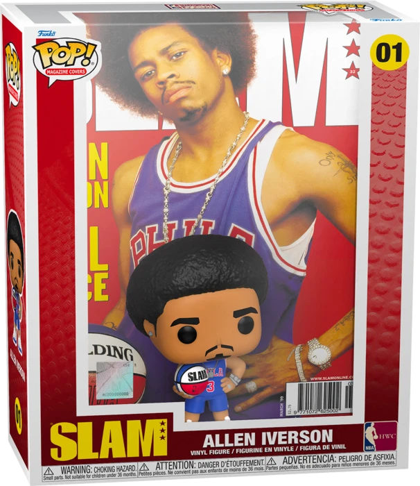 This Pop! MagaIne Cover features an Allen Iverson Pop! Vinyl Figure, as he appeared on the cover of SLAM Magazine. He stands in front of a backdrop of his iconic front cover, all of which comes packaged in an exclusive protective hardcase.